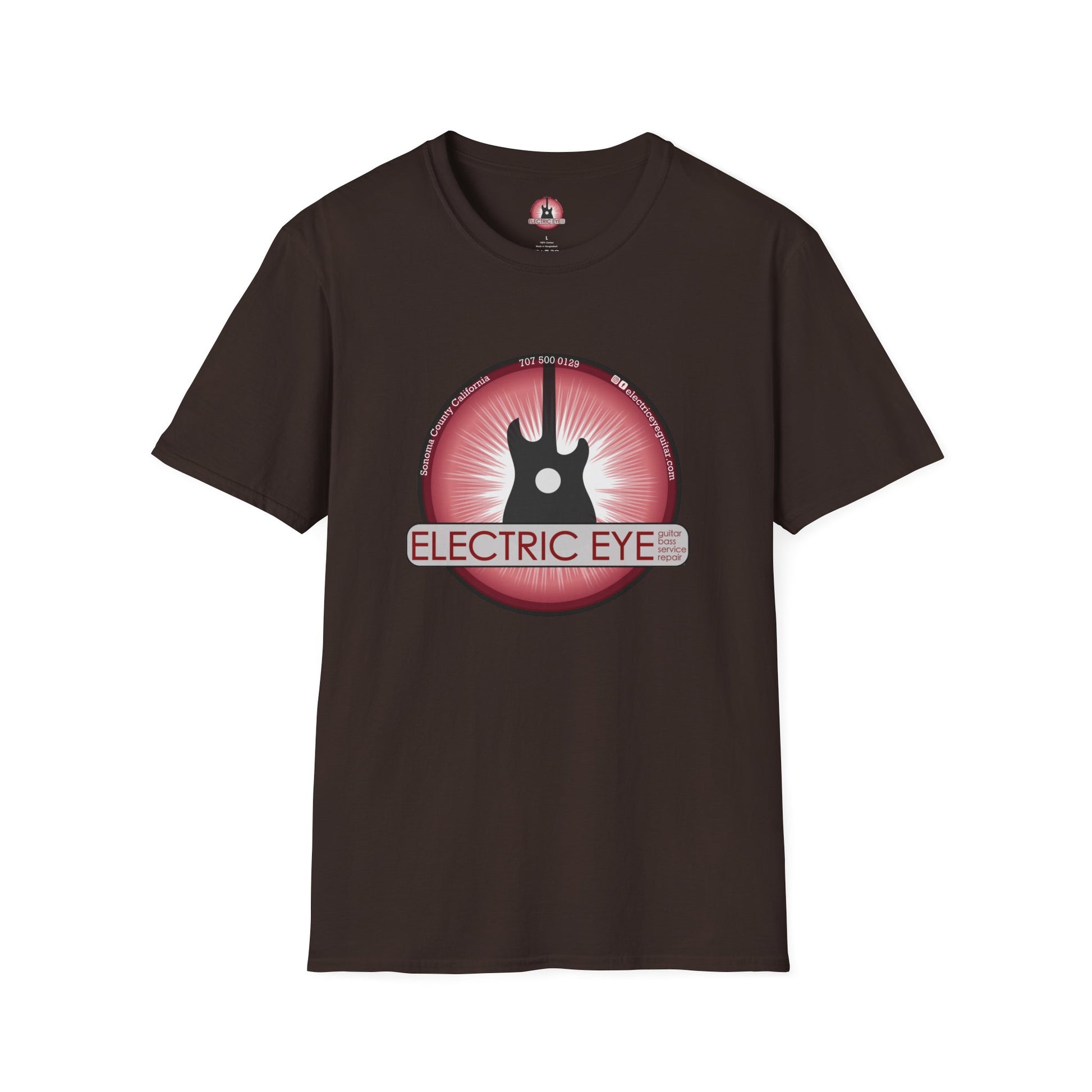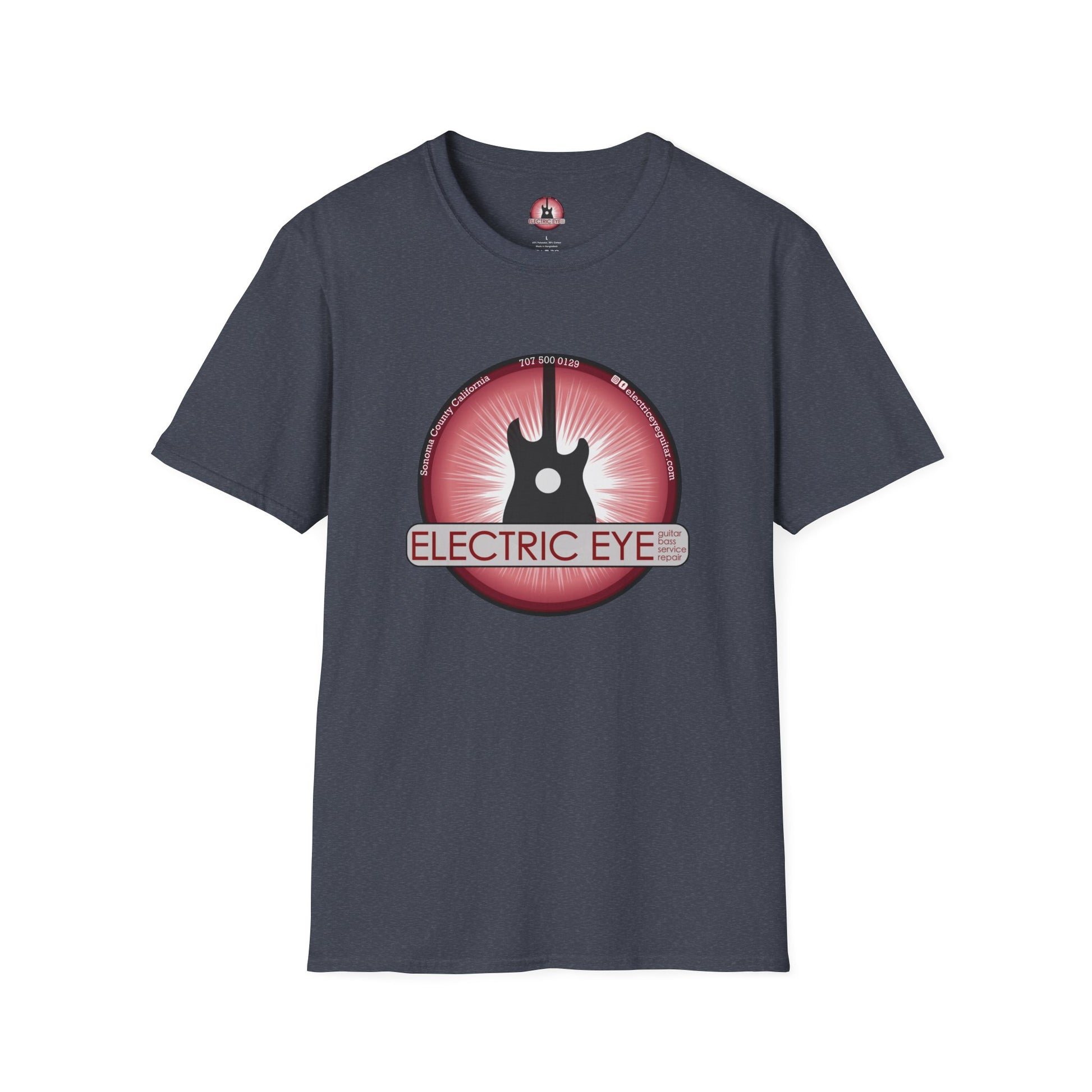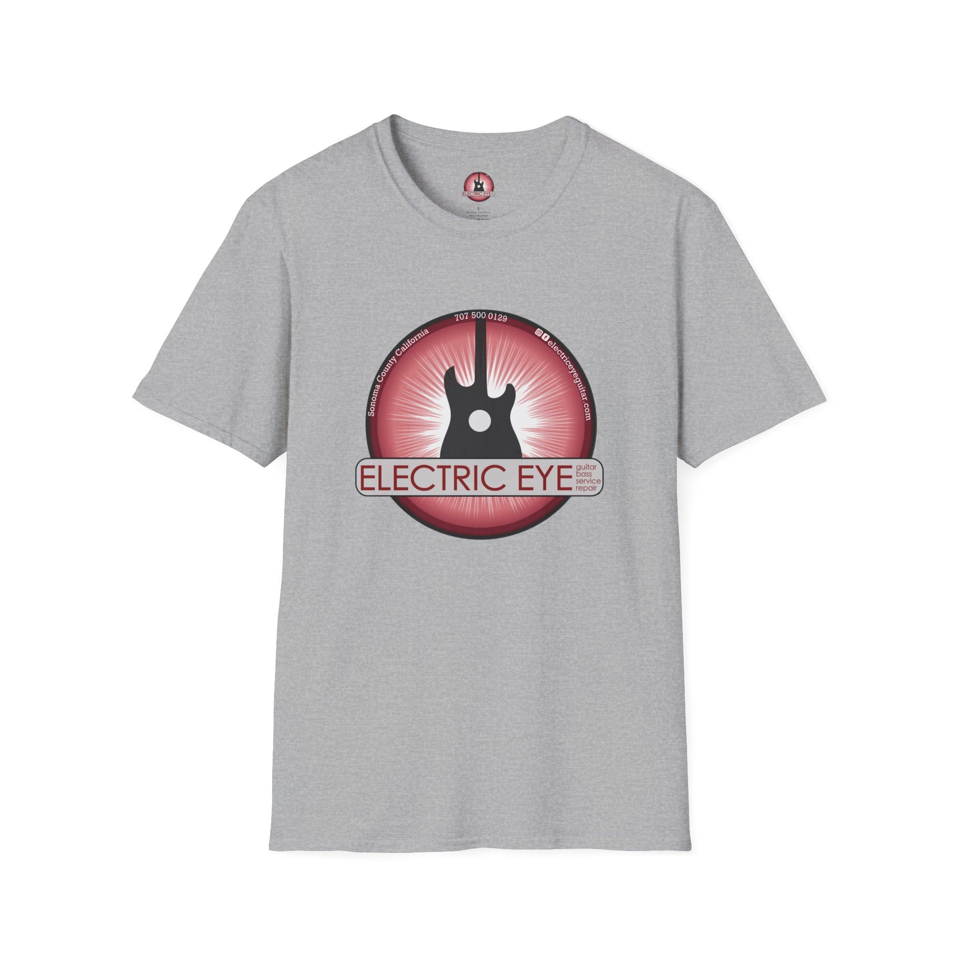 This lightweight cotton tee wears like a memory of loud rooms and late-night riffs. A bold, retro-inspired badge sits over the chest: a silhouette guitar set against a radiating red orb with the words “Electric Eye” threaded through — part vintage poster, part amp-light glow. It’s for people who live by setlists, who collect show stickers and remember the smell of stage smoke. Throw it on before heading to a local gig, a record store run, or a backyard jam; it layers easily under a worn denim jacket and reads instantly as someone who cares about sound and scene. The fabric is soft, breathable, and made to carry ink crisply so the graphic stays sharp through many spins in the wash.