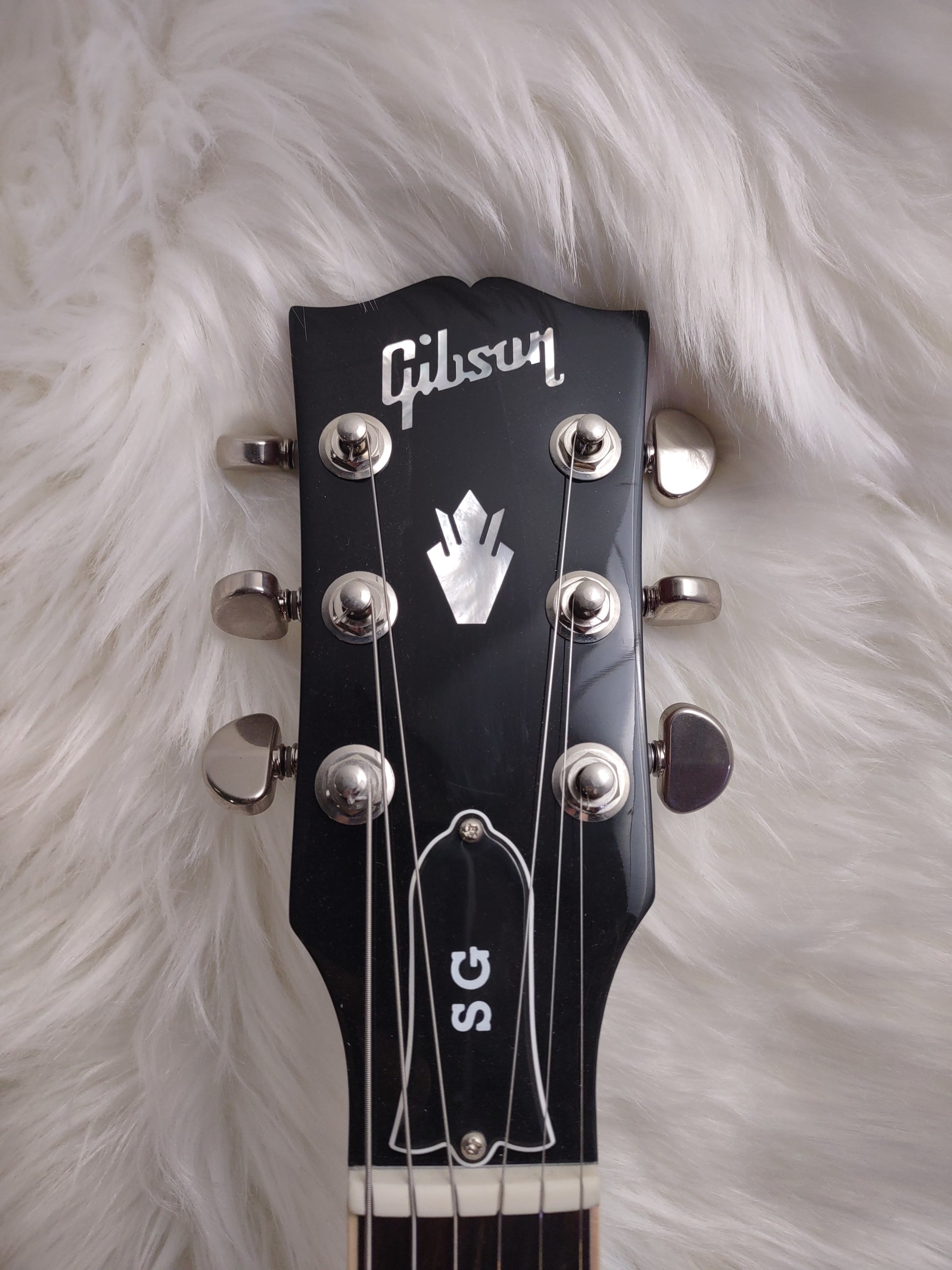 "The Gibson SG Standard rocks the classic looks and features associated with the late 60s style SG™ models sought after by many. A rounded profile mahogany neck, bound rosewood fingerboard, long tenon 19th fret neck joint, and a solid mahogany body provide the backbone for singing sustain. The 490R and 490T Alnico 2 pickups provide the power to drive. A black, 5-ply, full-face pickguard set this SG Standard apart from others... a truly versatile classic."